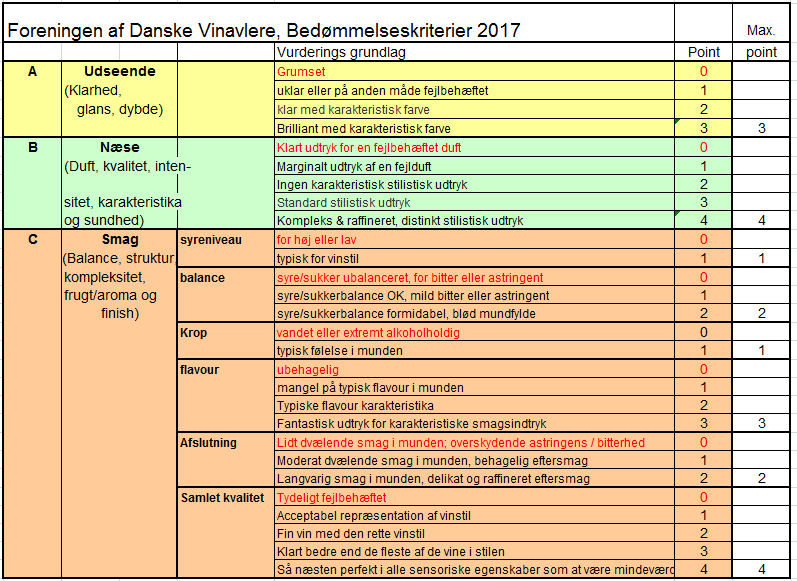 Ved et lokalt vinskue bør I benytte FDVs pointskala, der er adopteret fra England.