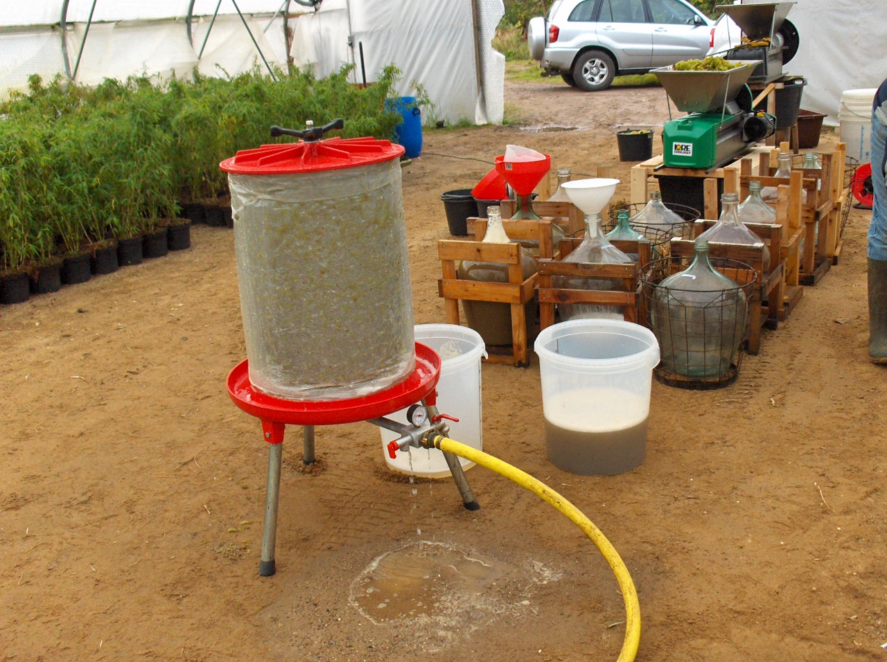 Nødvendige redskaber til vinfremstilling Af Søren Kongsted, redigeret af Lars Holt Der skal bruges mindst to beholdere til at have vinen i. Glasballon fås fra 5l til 50-60 l. Men pas på at gå op i større end 25-30 l…