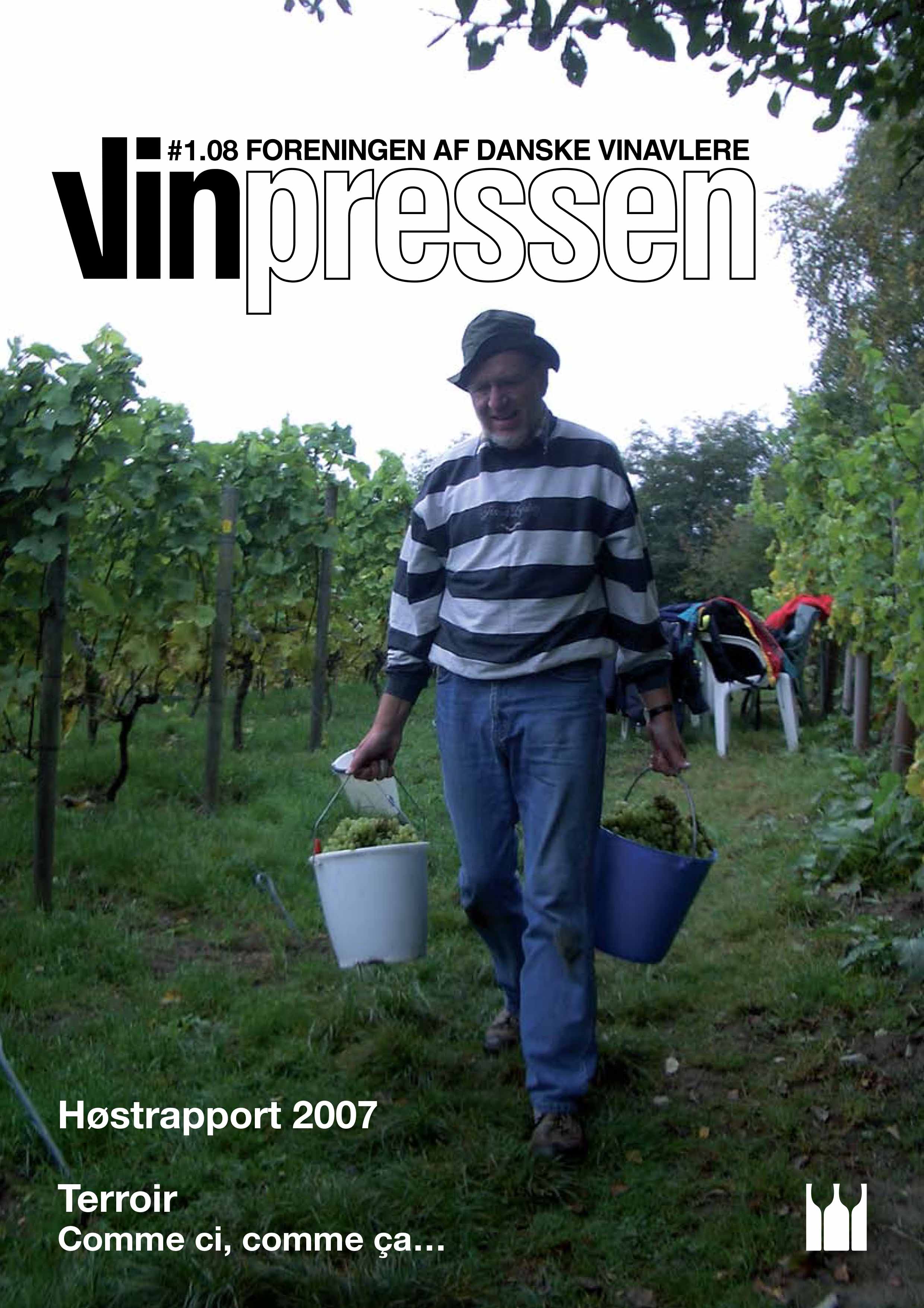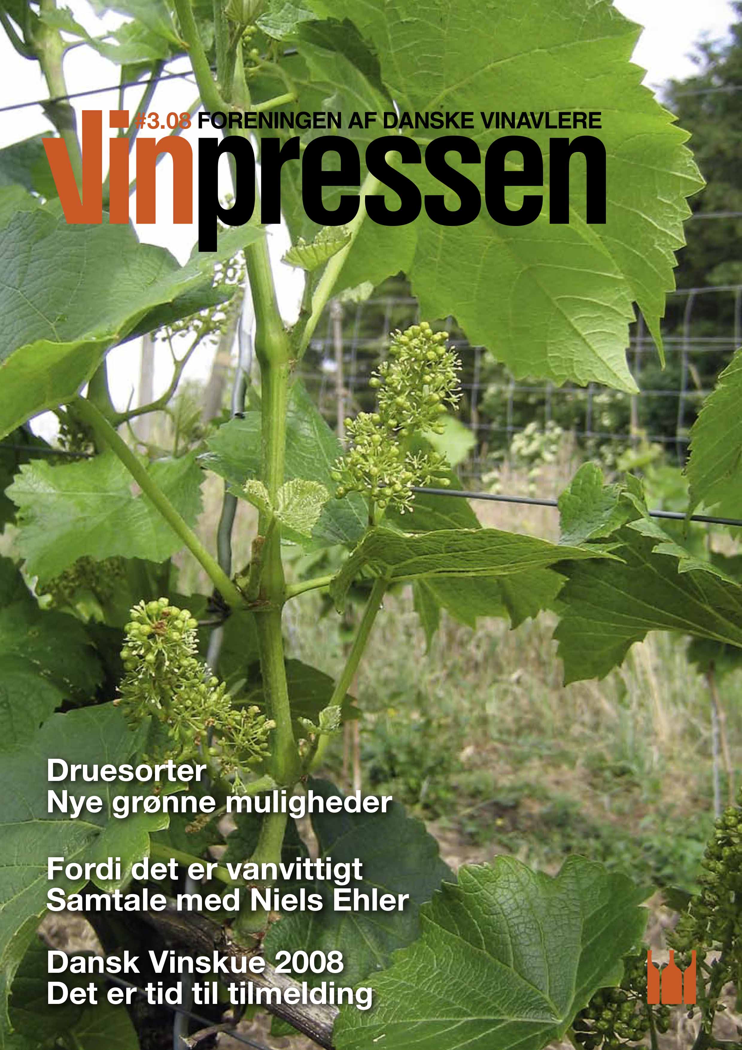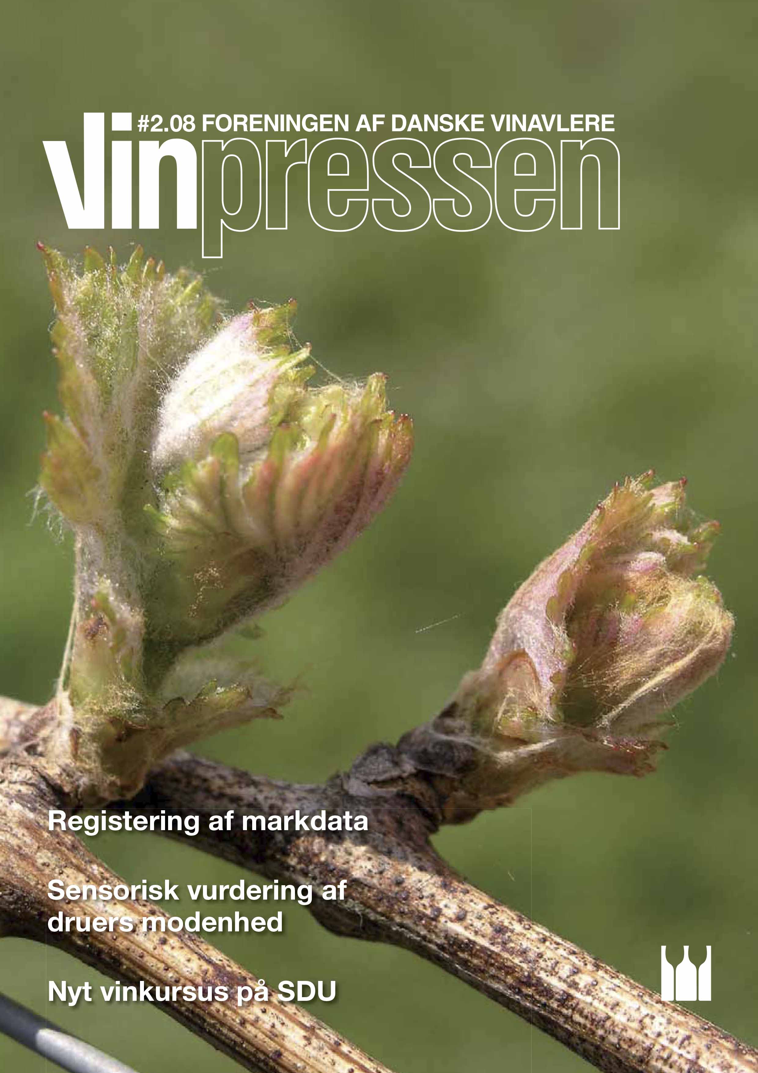 Vinpressen årgang 2008 Klik på det nummer af Vinpressen, som du vil læse. Du skal være logget ind for at læse Vinpressen. LoginVinpressen nr. 1 - 2008 Læs bl.a. om Klimaet i 2007 Høstrapport 2007 Terroir – Comme ci, comme ça… Vinpressen nr. 2 - 2008 Læs bl.a. om Studierejse til Freiburg Vinterseminar om nye vinsorter, nye gærtyper og smagning af vin Modenhedsindeks Sensorisk vurdering af vindruers modenhed Vinstokkens årscyklus: BBCH-skalaen er et praktisk værktøj Vinpressen nr. 3 - 2008 Læs bl.a. om Fordi det er vanvittigt – Samtale med Niels Ehler Freiburgs hvide Valentin Blattner. Nye vinsorter – nye idéer Prinzipal (Gm7116-26) Smugljanka Vinpressen nr. 4-5 - 2008 Læs bl.a. om Markedsføring – Åbne vingårde Tema vinfremstilling Vinfremstilling før og nu Hvad er vingær? Gærforsøg Vinifikation for nye vinmagere Om pH-måling Den malolaktiske fermentering Dansk Vinskue 2008 Årets vinpersonlighed 2008 Vinpressen nr. 6 - 2008 Læs bl.a. om TEMA Foreningslivet FDV Studietur 2008 Det så vi i Freiburg Lokalgruppe Sydsjælland Skåne – et svensk-dansk vinområde Spisedruer