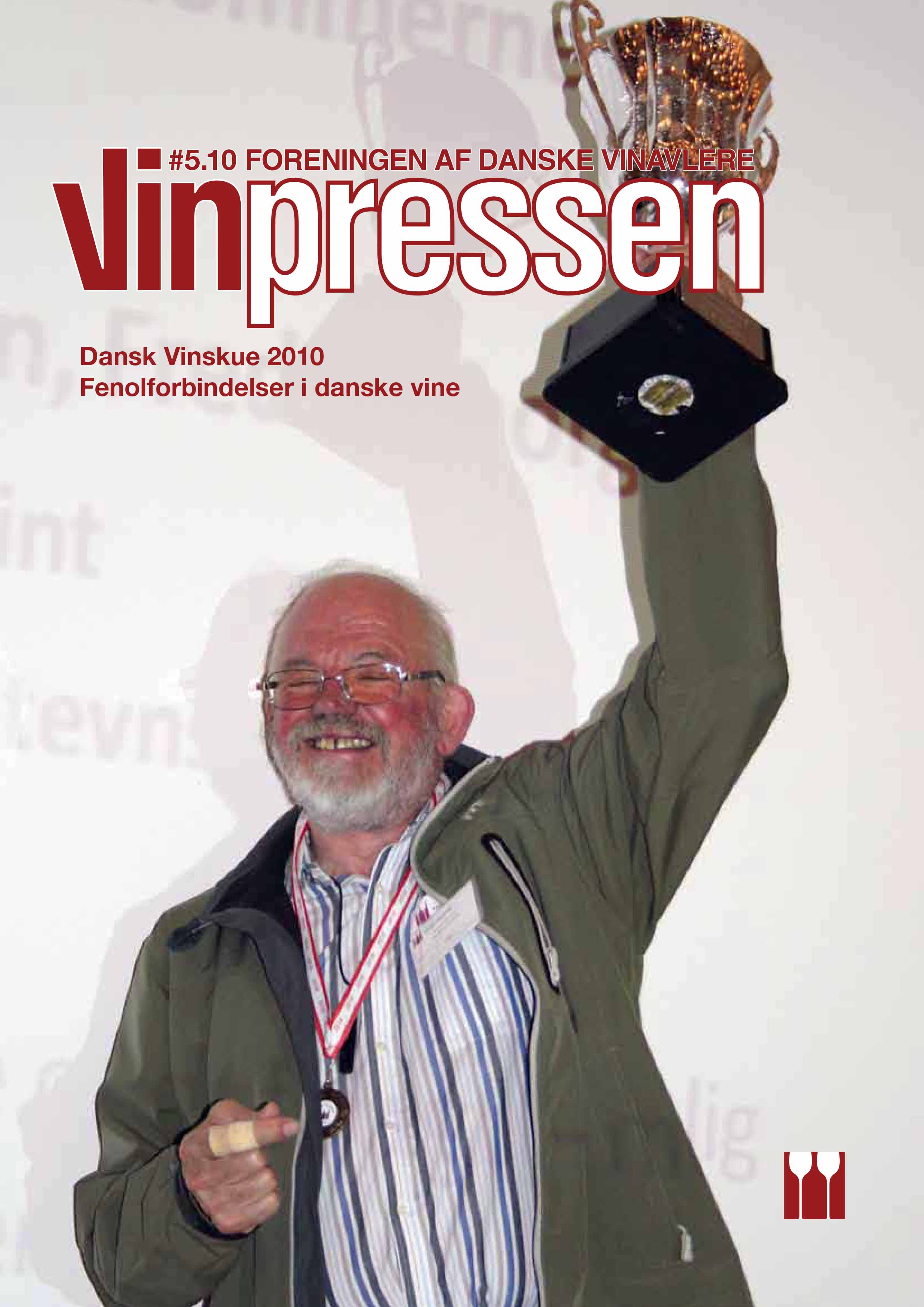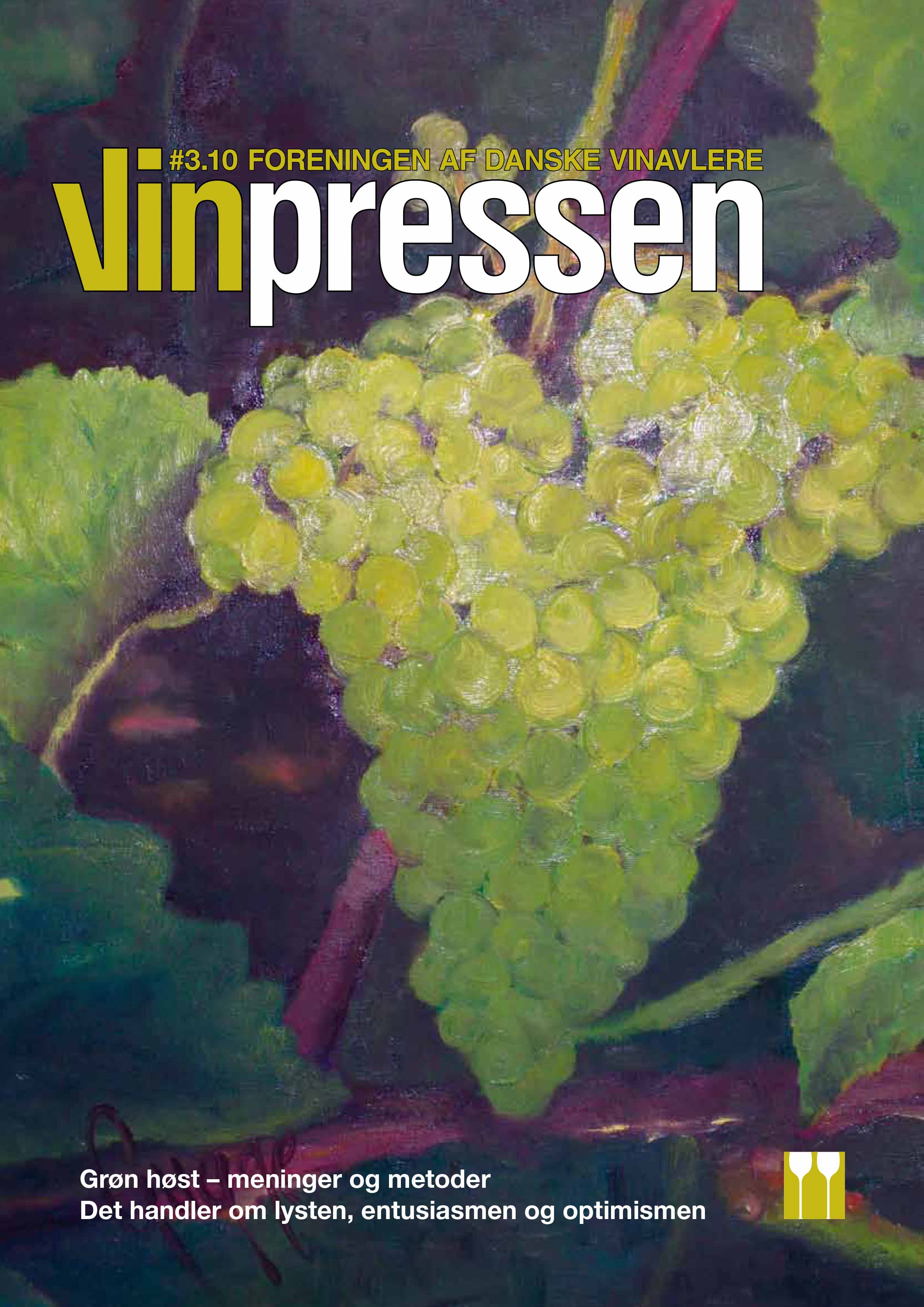 Vinpressen årgang 2010 Klik på det nummer af Vinpressen, som du vil læse. Du skal være logget ind for at læse Vinpressen. LoginVinpressen nr. 1-2 - 2010 Læs bl.a. om Hvordan var klimaet i 2009? Høstrapport, vinåret 2009 15 års druesortsforsøg på Gravenhøj Frugthave VitiNord – November 2009 Vinpressen nr. 3 - 2010 Læs bl.a. om Grøn høst – Meninger og metoder Lars Hagerman – Det handler om lysten, entusiasmen og optimismen Vinterseminaret 2010: Sund og stabil vin Klaring og stabilisering af vin Cool Climate – Vinbesøg i Canada Vinpressen nr. 4 - 2010 Læs bl.a. om Hvepse – en plage på mange måder Vinpressen gennem tiderne I en kælder sort som kul Genuine Danske Vine (GDV) – Manifest Vinpressen nr. 5 - 2010 Læs bl.a. om Vejboder – Hvad siger reglerne? Cabernet Cortis – Cabernet Sauvignon på godt og ondt Dansk Vinskue 2010 Fenol-forbindelser i dansk fremstillede vine Vinpressen nr. 6 - 2010 Læs bl.a. om Strategier i kampen mod Bois Noir Erfaringer fra FDV’s Englandstur Nordøst-amerikansk forædlingsarbejde